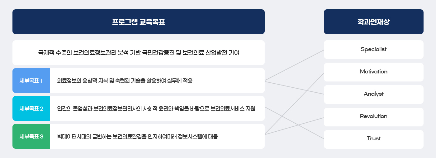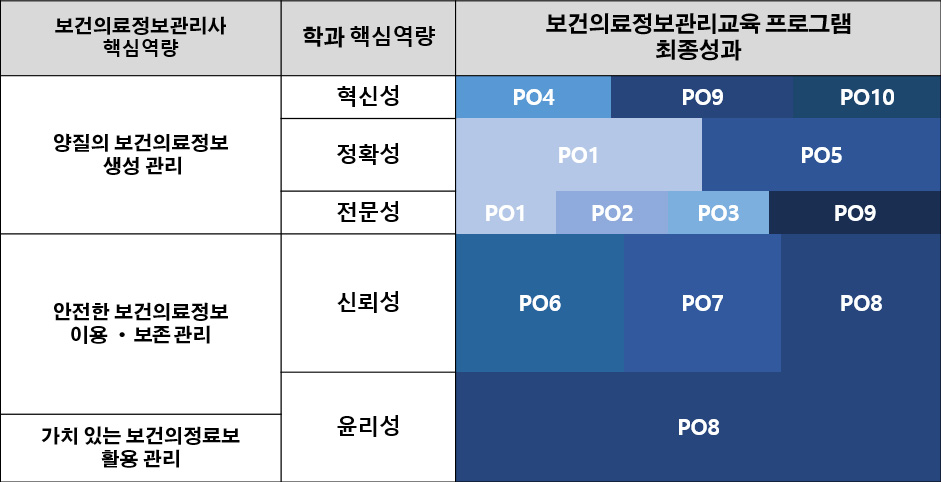 - 보건의료정보관리에 영향을 주는 국내·외 보건의료정책 변화를 이해하고 분석할 수 있는 능력