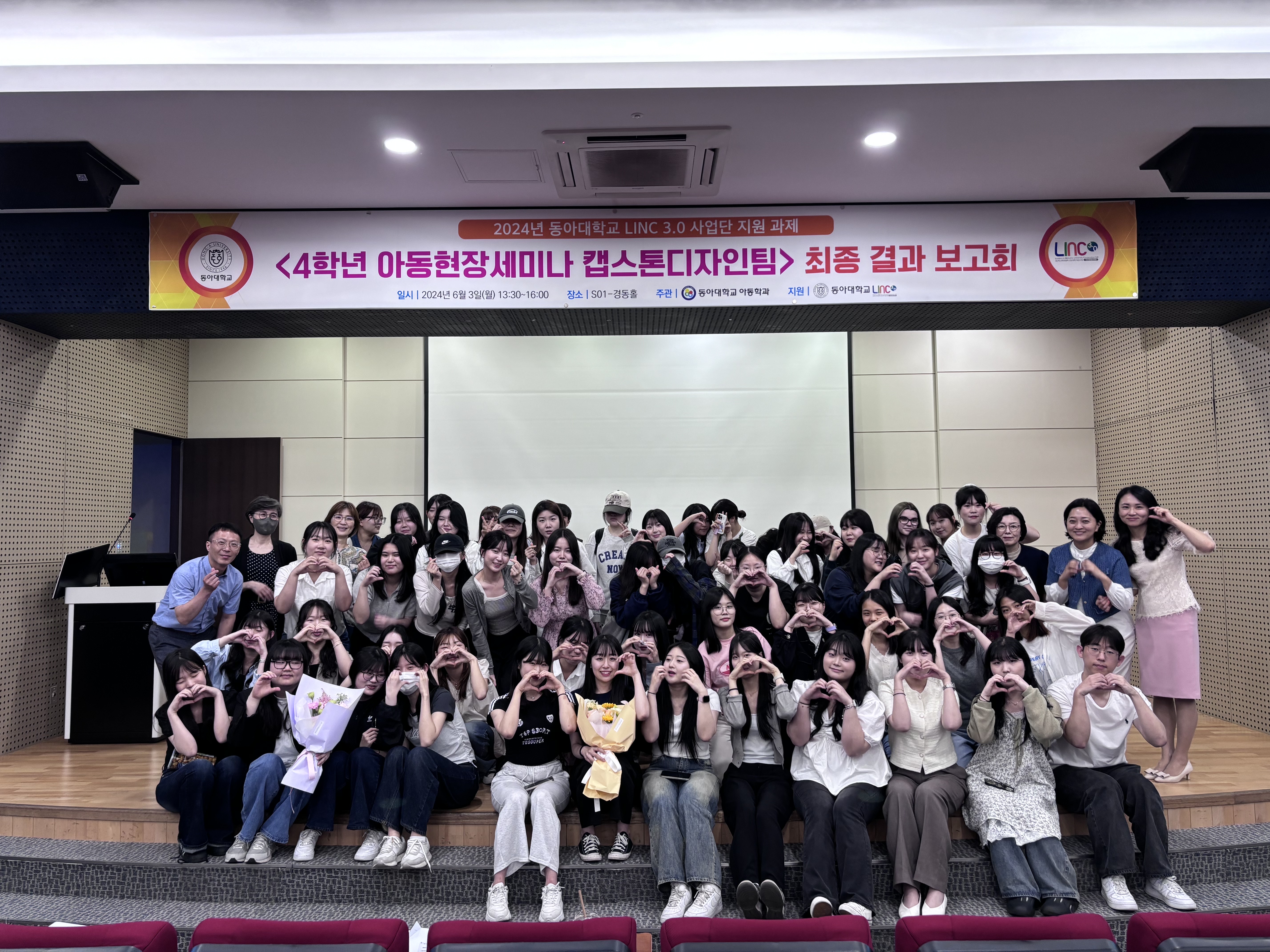 - 아동현장세미나(캡스톤디자인) 교과목을 통해 학생 주도의 창의적 종합설계(예: 온오프라인 교육콘텐츠 개발, 동화책 제작, 교사용·부모용 지도서, 개발 기관연계 놀이 프로젝트 등) 수행