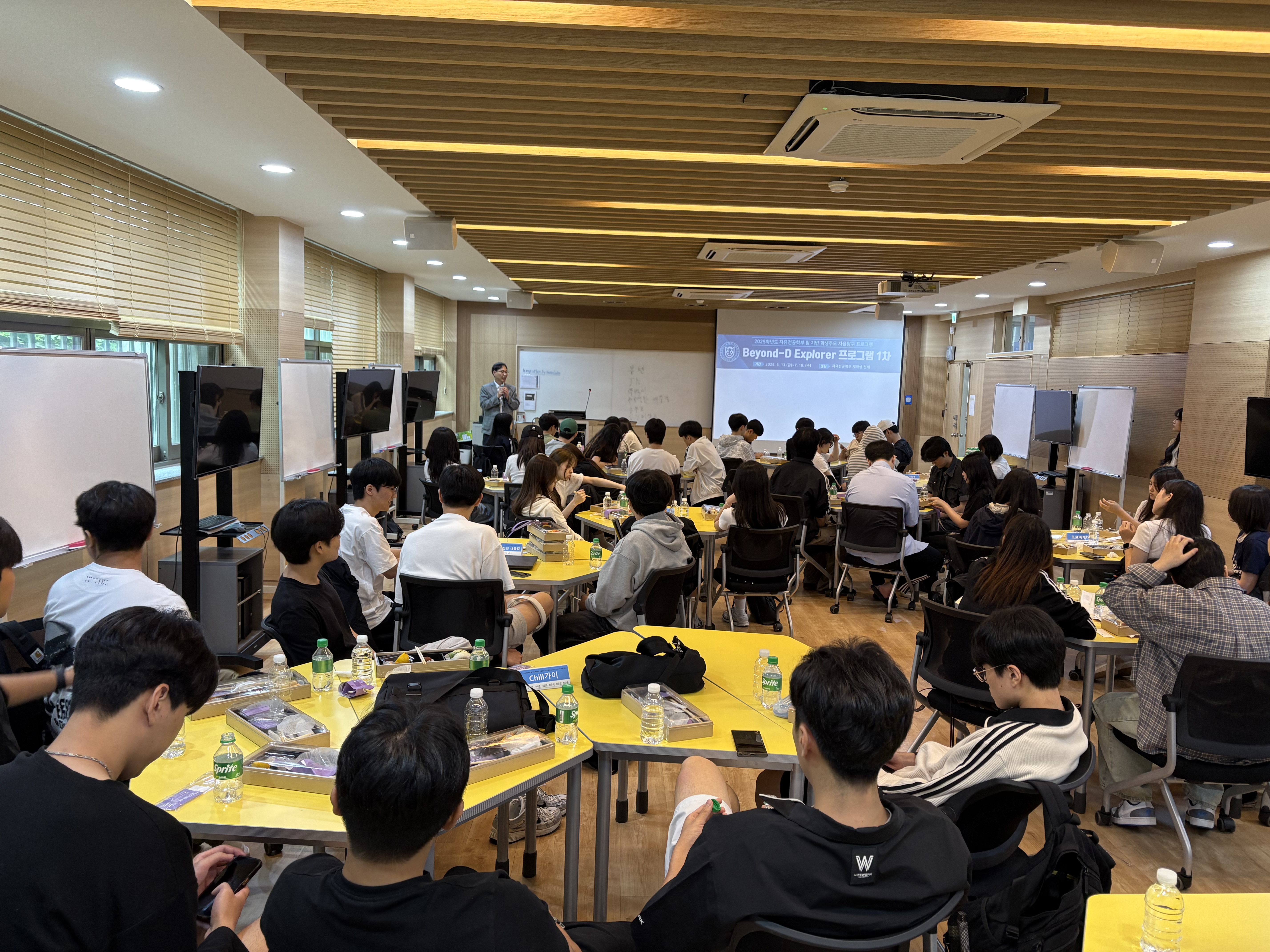 - Beyond-D Explorer 프로그램 학생들이 자발적으로 팀을 구성하고 자유롭게 주제를 선정하여 탐구하는 팀 기반 자기주도적 자유 주제 탐구 활동입니다. 학생들이 주도적으로 문제 발굴, 탐구, 해법 모색 등의 활동을 통해 학문적 문제의식을 고도화할 수 있게 됩니다.