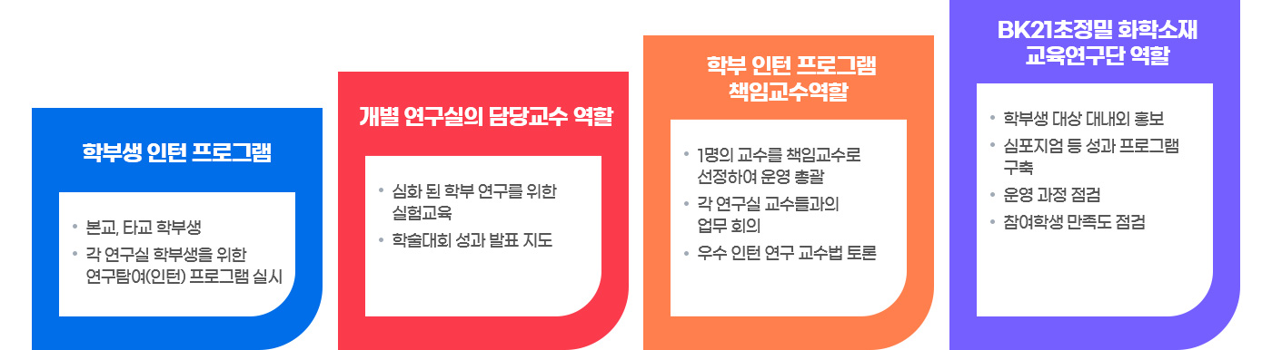 초정밀 화학소재 엔지니어 인증제를 통해 검증된 석박사급 전문 엔지니어를 배출함 (특성화 교과 필수이수 ➡ ORI 교과 필수이수 ➡ 글로벌 프로그램 참가)